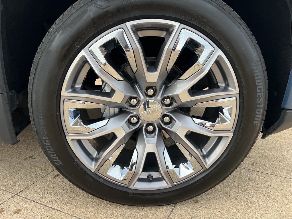 Denali Reserve Package: GMC MultiPro Power Steps; Power Sunroof; 22" X 9" Painted Aluminum Wheels. Technology Package: Multicolor 15" Diagonal Head-Up Display; Rear Camera Mirror. Preferred Equipment Group 5SA: Trailer Side Blind Zone Alert; Chrome Wheel to Wheel Assist Steps; Power Sliding Rear Window with Rear Defogger; Ultrasonic Front and Rear Park Assist; Trailer Camera Provisions; Electric Rear-Window Defogger; Theft Deterrent System (unauthorized Entry); Chrome Header with Signature Denali Chrome Grille; Front Rain-Sensing Wipers; Heavy-Duty Air Filter; 120-Volt Interior Power Outlet; Heated Driver and Front Outboard Passenger Seating; Wireless Charging; Color-Keyed Carpeting Floor Covering; OnStar and GMC Connected Services Capable; Heated 2nd Row Outboard Seats; Power Front Passenger Windows with Express Up/down; Premium Bose 7-Speaker Sound System; Power Rear Windows with Express Down; Integrated Trailer Brake Controller; HD Surround Vision; Ventilated Driver and Front Passenger Seats; Power Rake and Telescoping Steering Column; Keyless Open and Start; Perimeter Lighting; Push Button Start; LED Cargo Area Lighting; Remote Vehicle Starter System; In-Vehicle Trailering System App; Hill Descent Control; Floor-Mounted Center Console; 170 Amp Alternator; Bed View Camera; Auxiliary External Transmission Oil Cooler; Rear Cross Traffic Braking; GMC Pro Safety; Trailering Package; 2 USB Ports; 2 Charge/data USB Ports Inside Center Console; Chrome Recovery Hooks; Denali Premium Suspension with Adaptive Ride Control; Steering Wheel Audio Controls; 2 type-C Charge-Only Rear USB Ports; GMC Connected Access Capable; Universal Home Remote; 2-Speed Transfer Case; Deep-Tinted Glass; Spray-On Pickup Bedliner with Denali Logo; SiriusXM with 360L; Hitch View; Power Front Windows with Driver Express Up/down; Rear Pedestrian Detection; Wi-Fi Hotspot Capable; Rear Wheelhouse Liners; Auto-Locking Rear Differential; Power Door Locks. GMC MultiPro Power Steps. Power Sunroof. Downpour Metallic. Dual Active Exhaust. Wheel Locks (set of 4). **Equipment listed is based on original vehicle build and subject to change. Please confirm the accuracy of the included equipment by calling the dealer prior to purchase.**